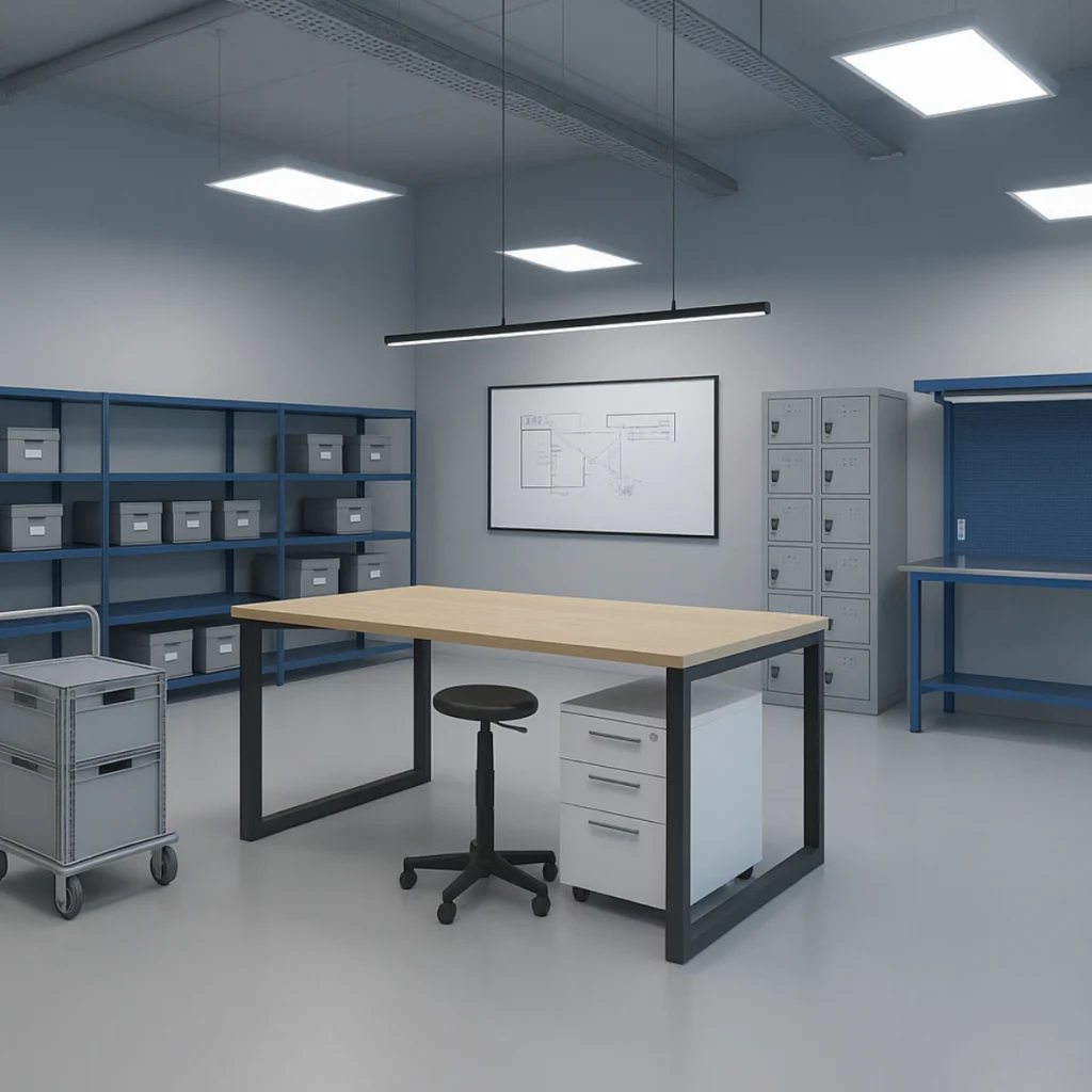 Mobiliario robusto y funcional para entornos industriales. Diseñado para resistir condiciones exigentes y optimizar la productividad.
