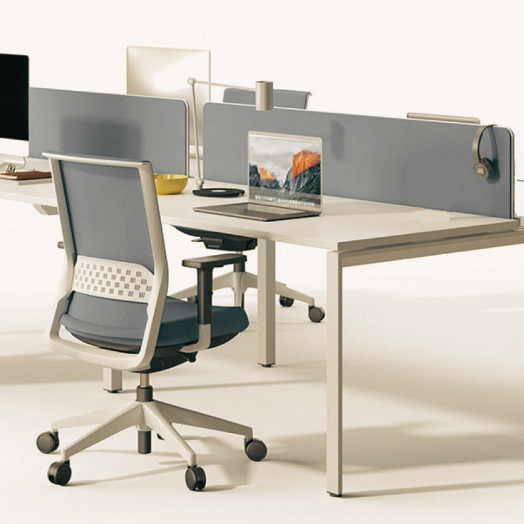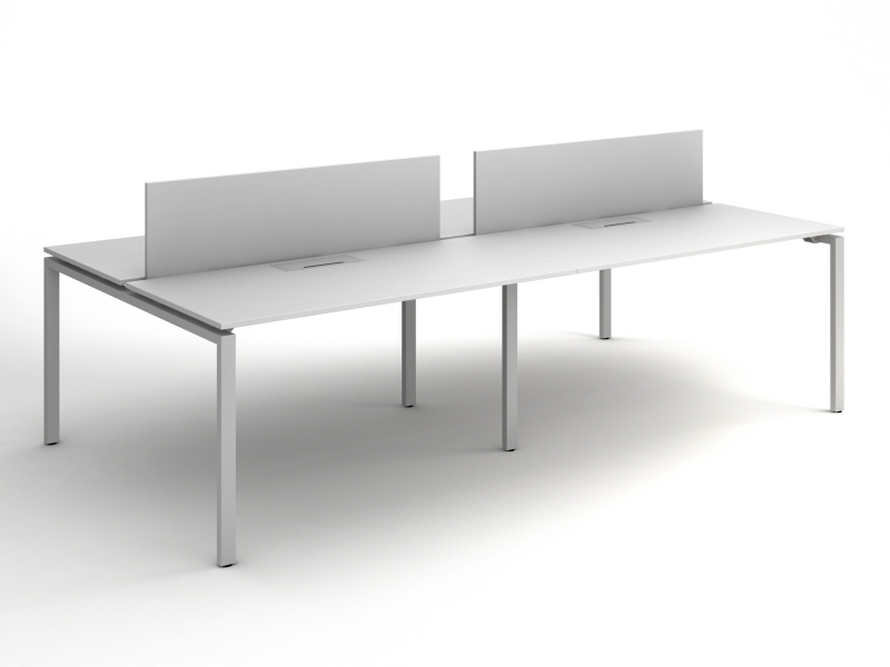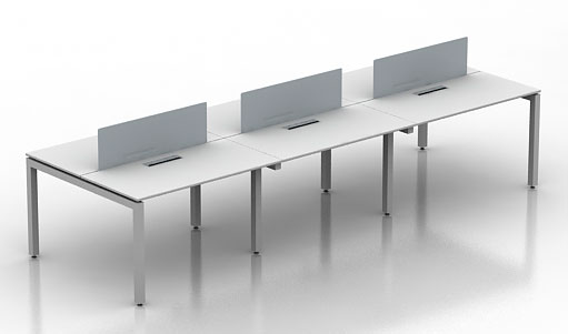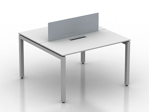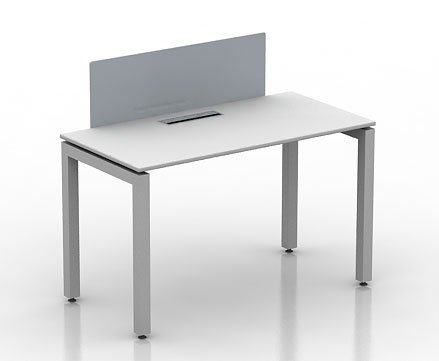 Escritorio operativo con mampara, fabricado en melamina y estructura metálica en forma de grapa con pintura epóxica horneada. Varias presentaciones.
