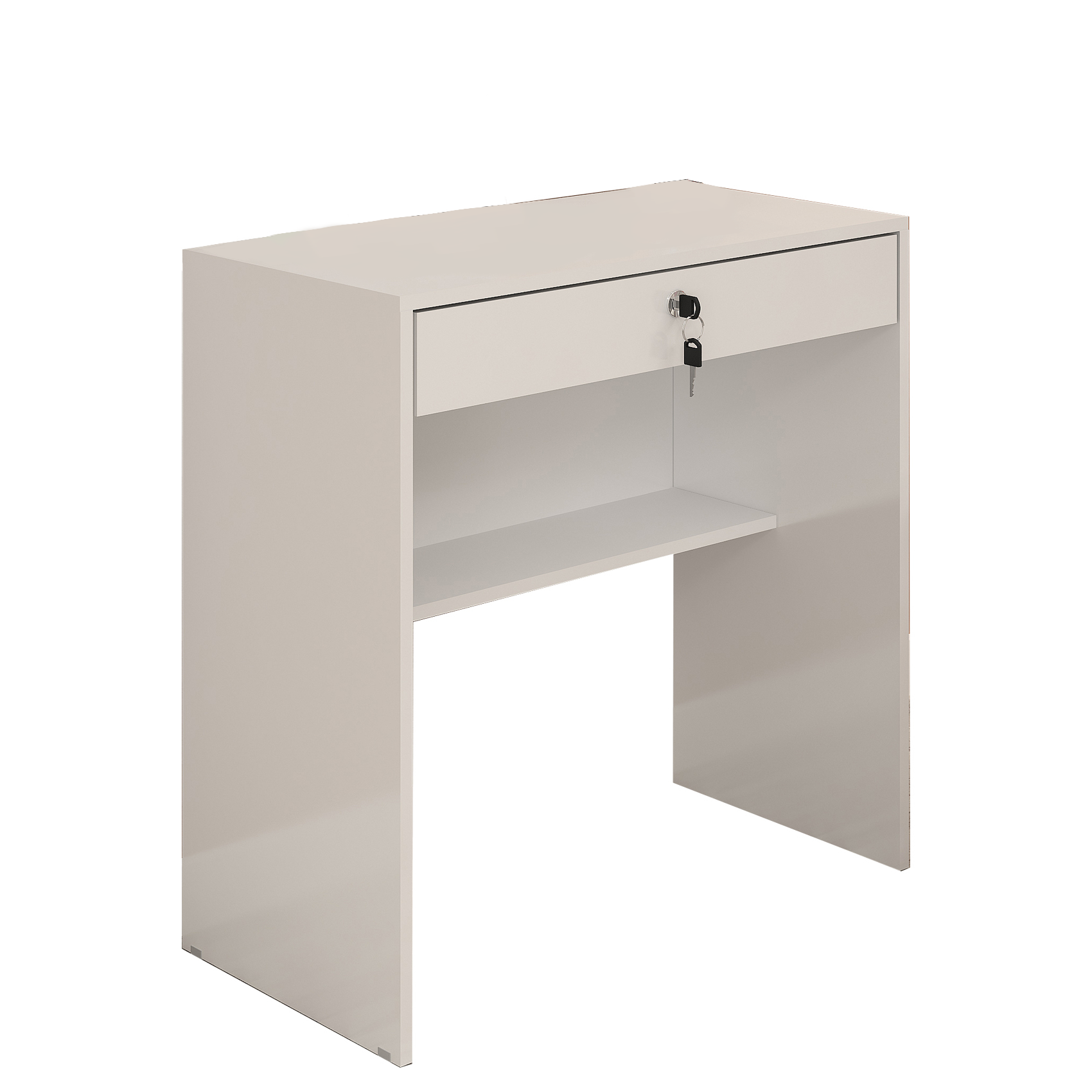 • 1 cajón papelero con correderas metálicas reforzadas de extensión total con cerradura. 1 estante bajo cubierta para la organización de objetos.
