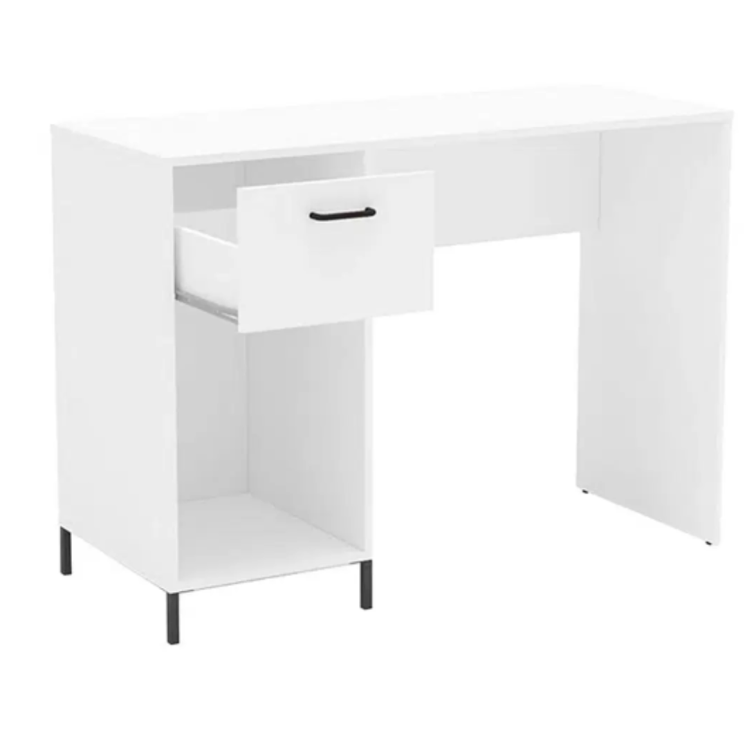 - En pedestal; 1 cajón papelero con correderas metálicas reforzadas de extensión total Y 1 hueco para la organización de objetos. 4 patas de metal.