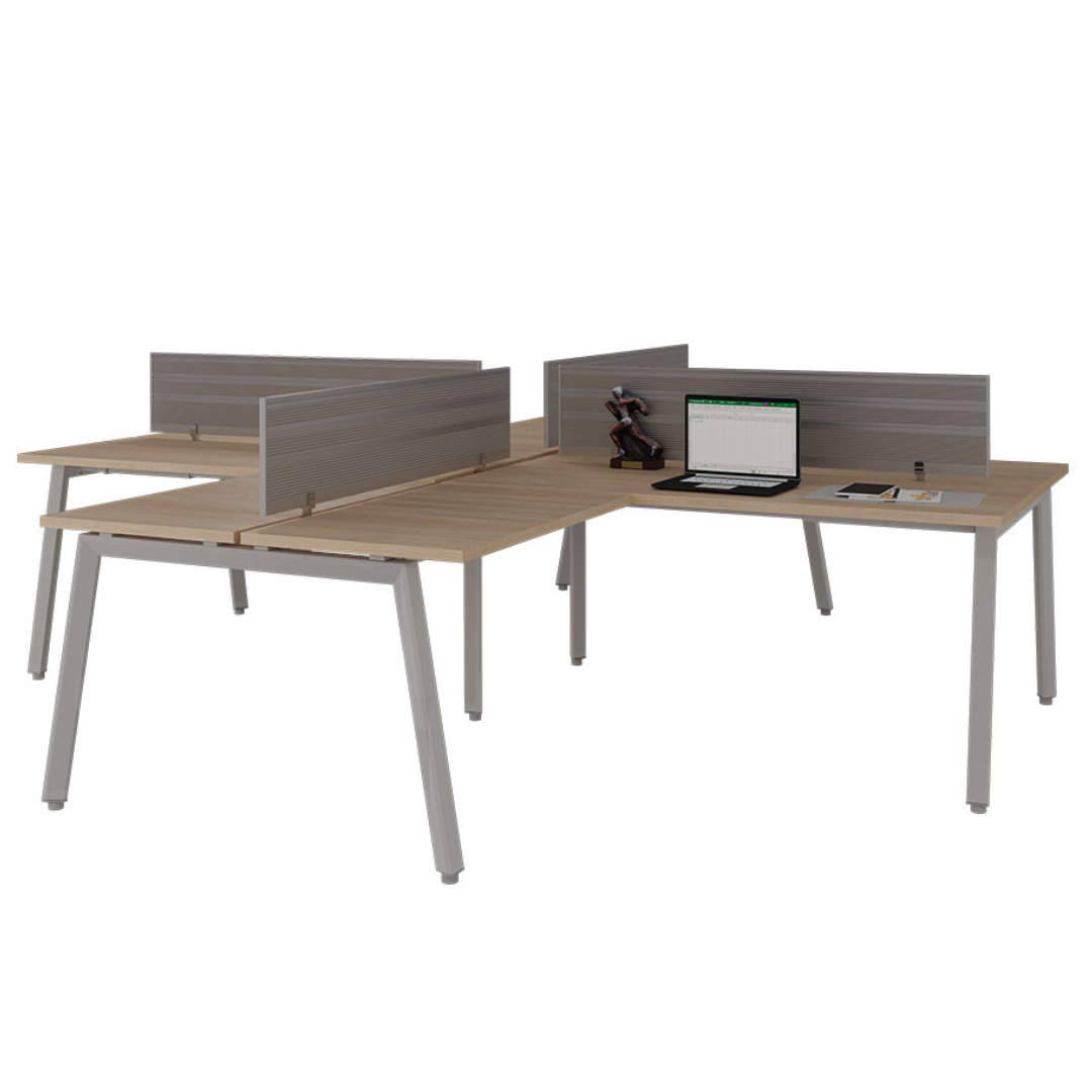 Estación de trabajo para 4 personas a la medida con cubiertas fabricadas en melamina y estructura metálica importada. Estilo moderno y funcional.