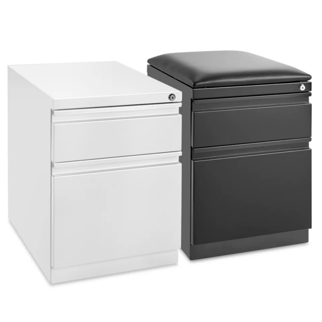 - Archivero con un cajón papelero y un cajón de archivo con correderas de extensión telescópica en todos sus cajones.