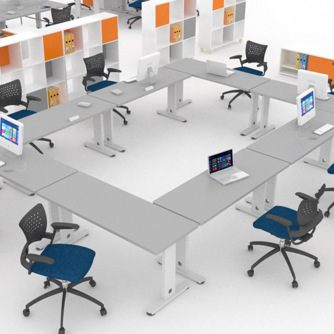 • Estructura patas importadas tipo panel con compartimientos de cables.
