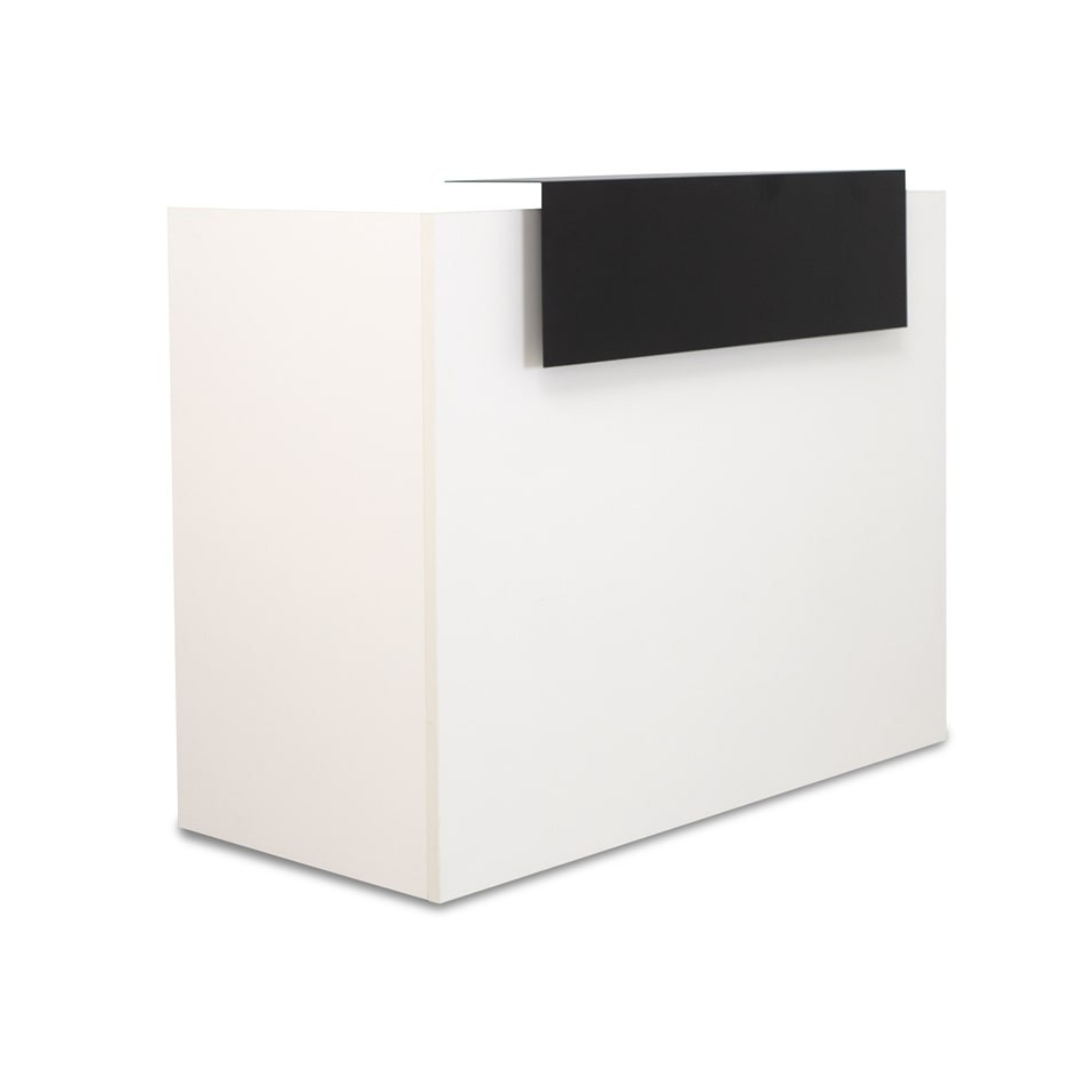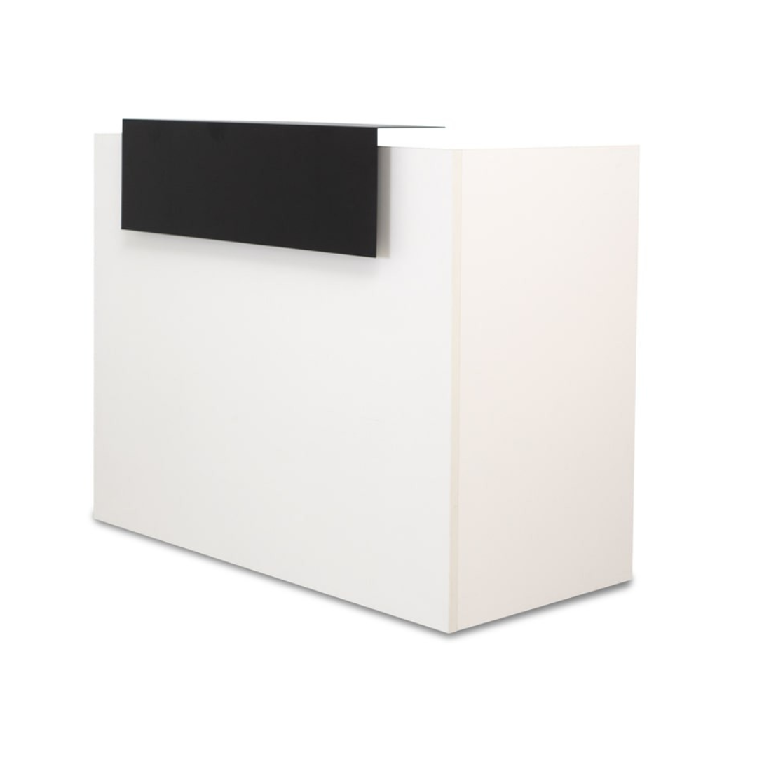 Recepción que combina diseño minimalista y funcionalidad. Con acabado blanco y detalles negros, incluye repisa para computadora. Personalízala en colores y medidas para adaptarla a tu espacio. ¡Elegancia y estilo para tu oficina!