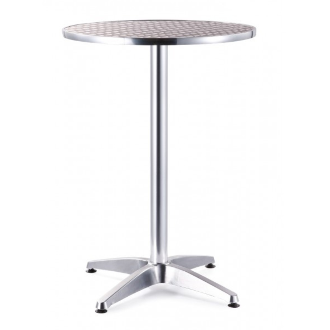 - Mesa alta redonda con cubierta de 60cm de diámetro en espesor de 16 mm con el forro de aluminio.