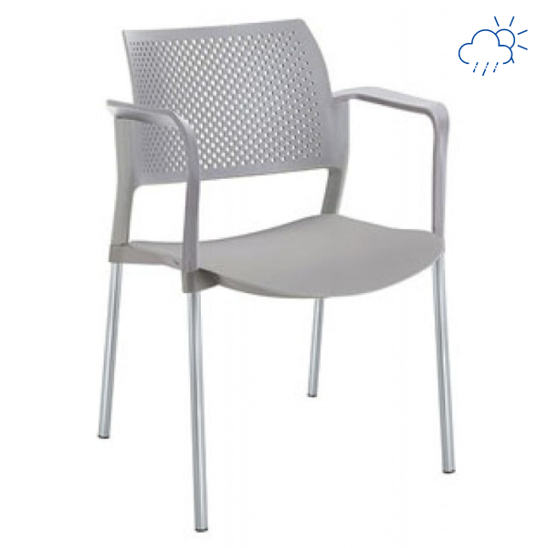 Silla ergonómica con asiento y respaldo en polipropileno con descansabrazos ideal para uso exterior e interior. Alta resistencia.