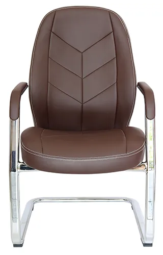 Silla ideal para visitantes con asiento y respaldo alto con cabecera, tapizados en soft revolving leather en elegante color chocolate o negro.