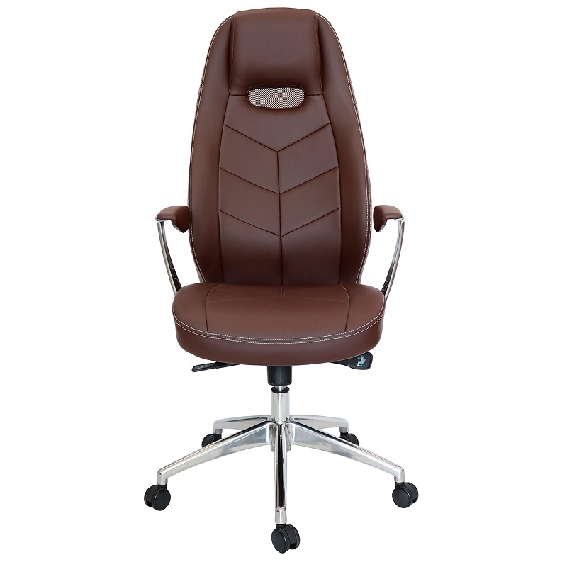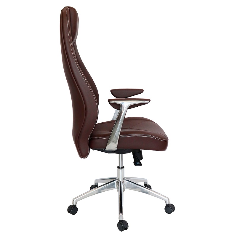 - Brazos de aluminio fundido y pulidos con terminado natural. Acojinados y tapizados en soft revolving leather color chocolate