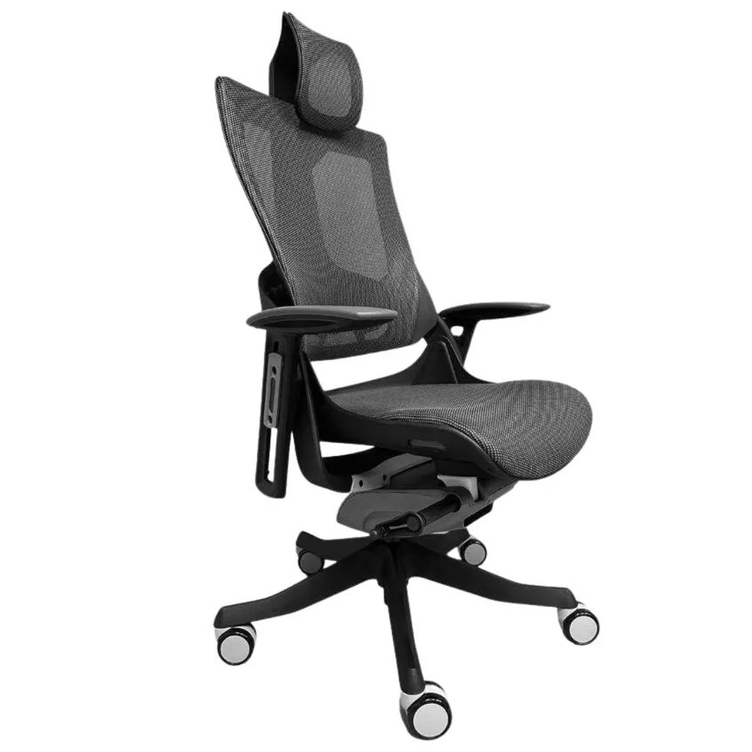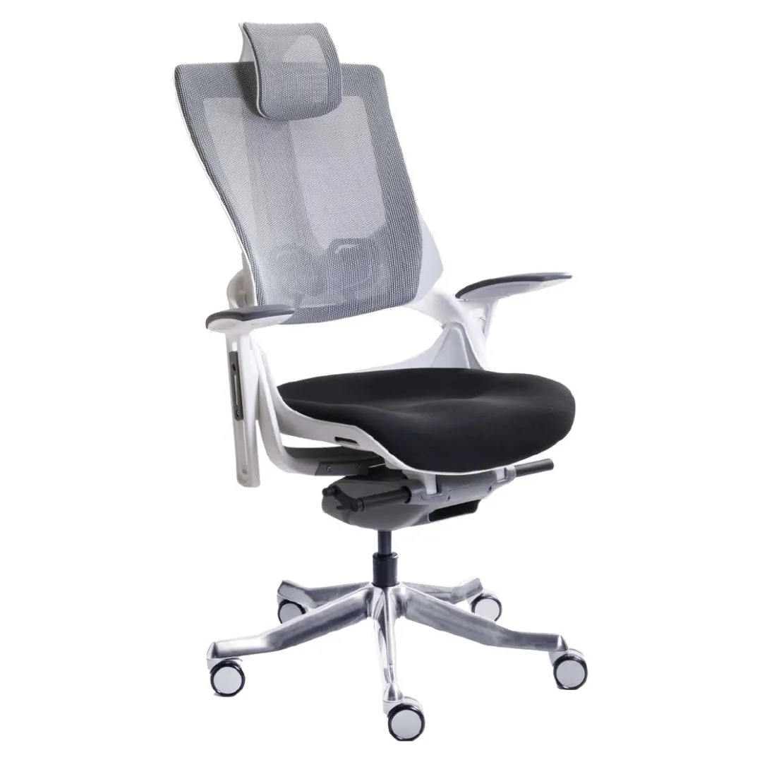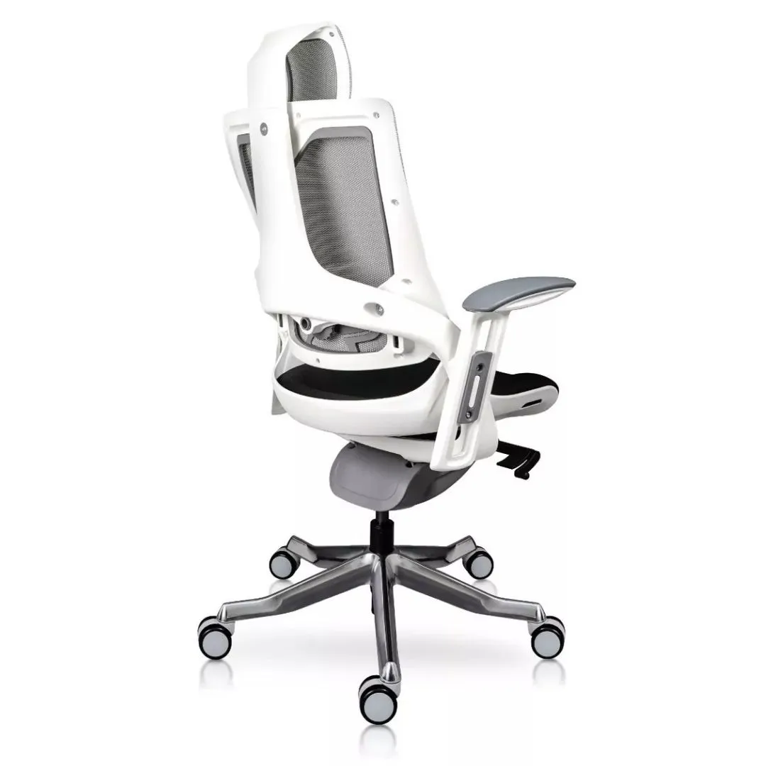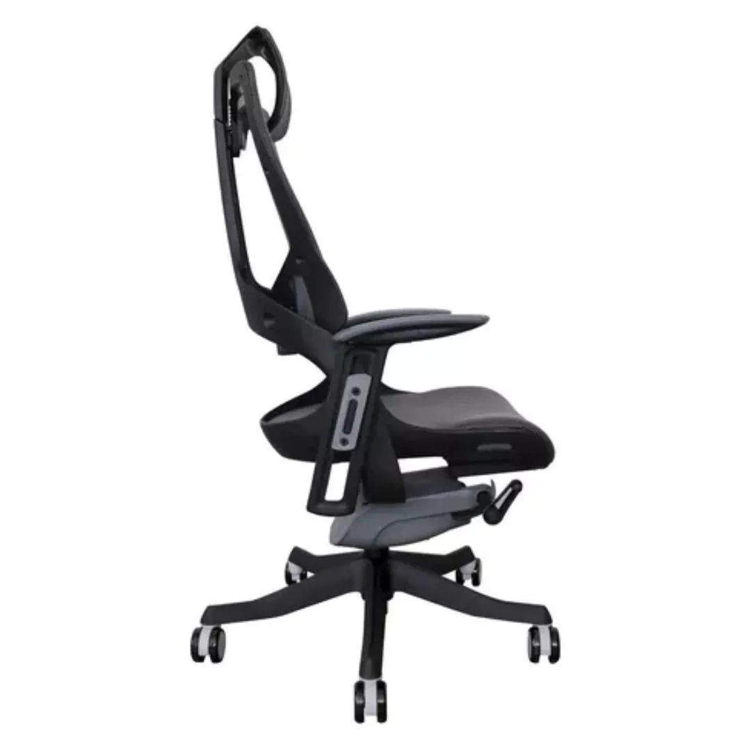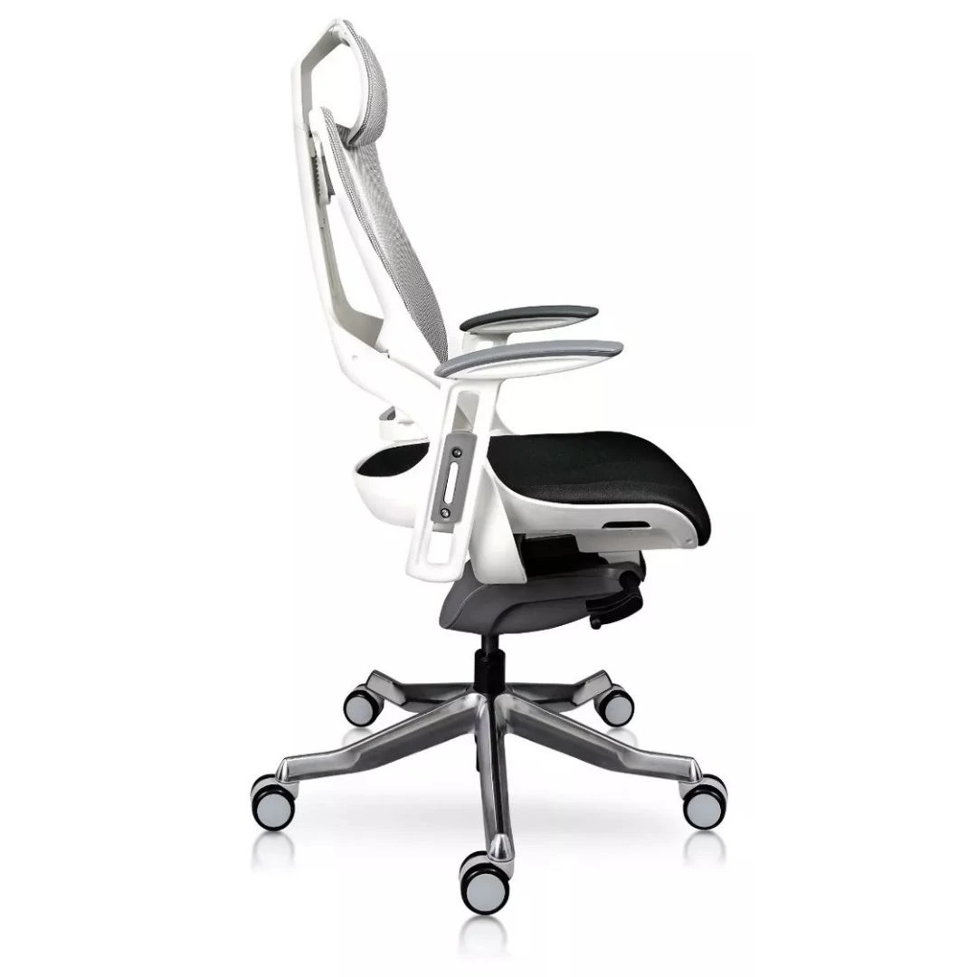 Silla de oficina ergonómica, que brinda comodidad por sus excelentes atributos; soporte lumbar, descansa brazos y reposa cabezas. Diseño moderno y ultra cómodo, disponible en blanco y negro.