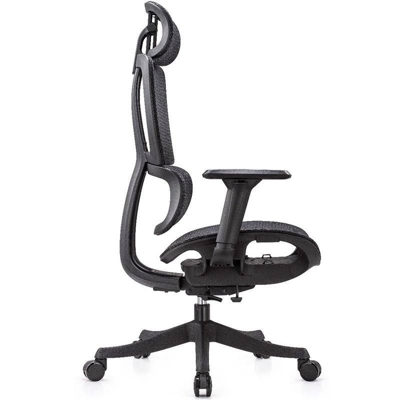 Con asiento y respaldo fabricados en polipropileno color negro, tapizados en malla coreana color negro de alta resistencia al peso y diseño ergonómico, excelente soporte lumbar fijo.
