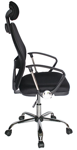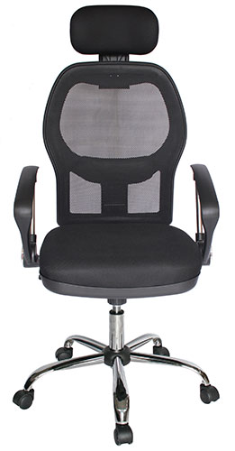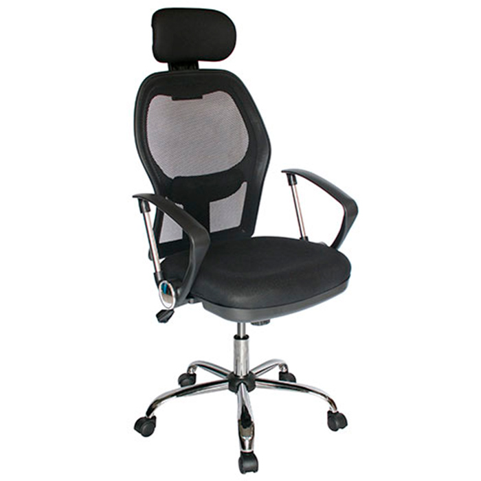 - Respaldo alto en malla de diseño ergonómico con cabecera acojinada y tapizada