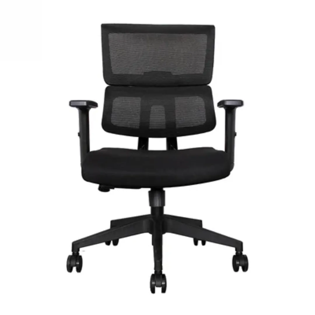 - Respaldo Tapizado en malla con soporte lumbar ergonómico fijo tapizado en malla color negro.