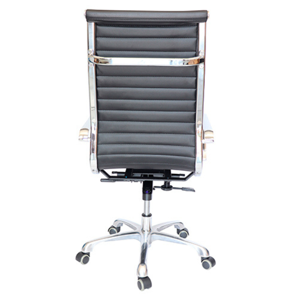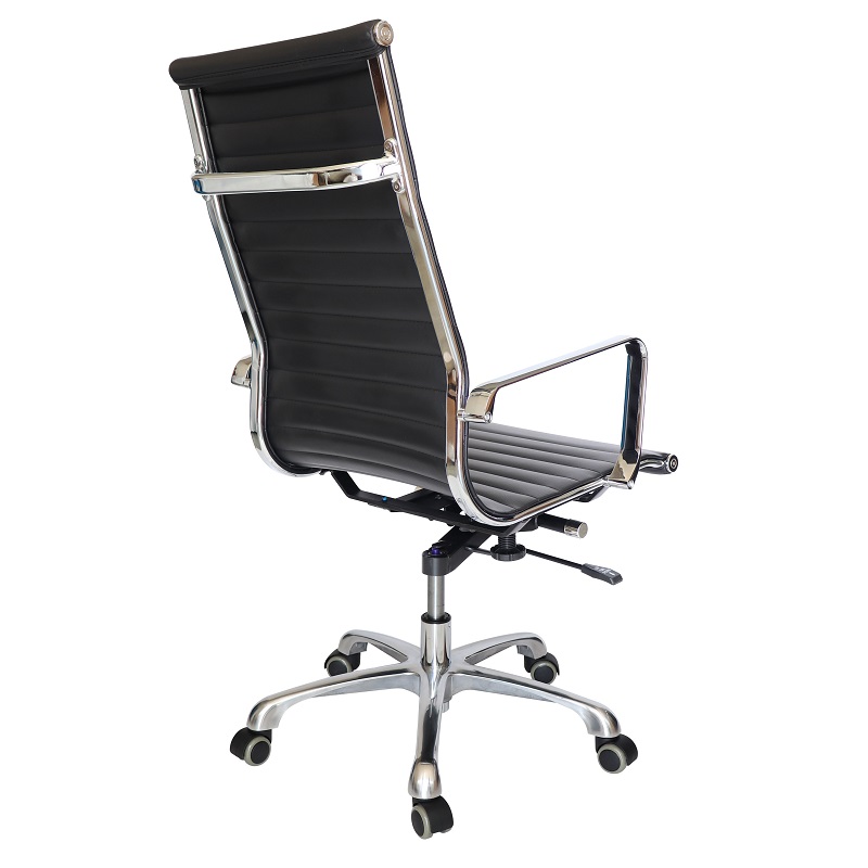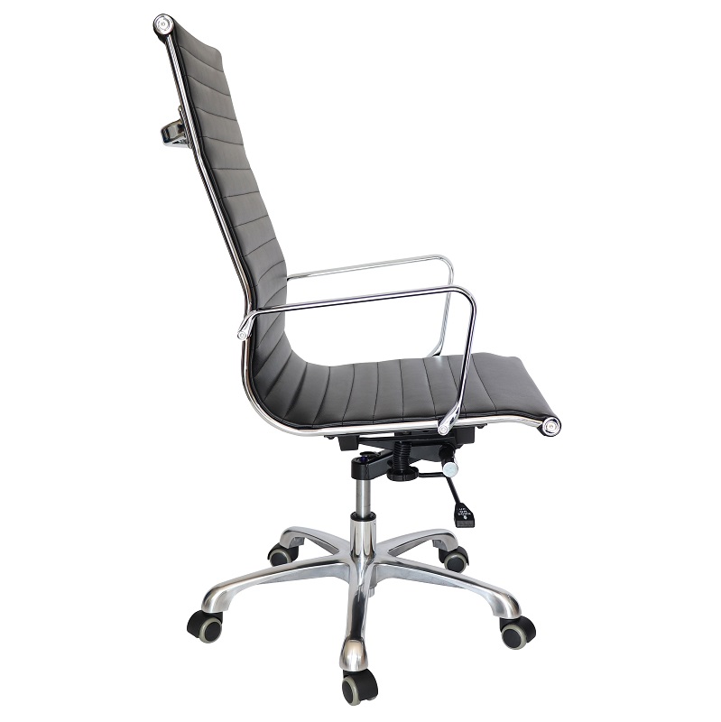 - Asiento y respaldo alto de un sólo corte tensado con la estructura para dar una suspensión única y adaptarse al cuerpo tapizado en soft revolving leather