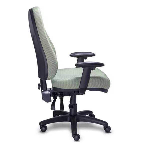 • Respaldo alto con ajuste de altura, tapizado y diseño ergonómico